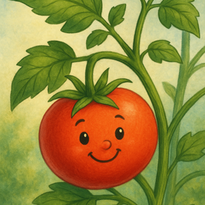 Im Kindergarten „Sonnenschein“ gab es einen kleinen Gemüsegarten. Dort lebte Tomaten-Anton, eine knallrote, runde Tomate mit einem grünen Krönchen auf dem Kopf. Jeden Morgen wackelte er fröhlich an seinem Stiel und rief: